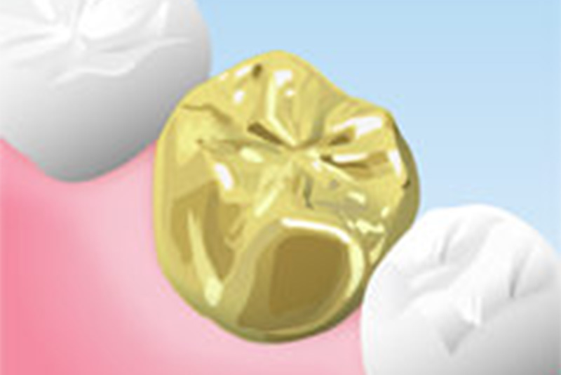歯の形を整えて型取りを行い、技工所で精密にゴールドを鋳造します。 完成後、歯に装着して噛み合わせを調整し、治療が完了します。 |