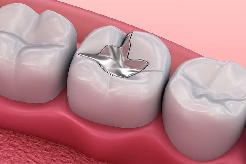| 特徴 | 「金銀パラジウム合金」という金属素材による詰め物・被せ物です。 金属を使用しているため、強度が高いのが特徴です。 |